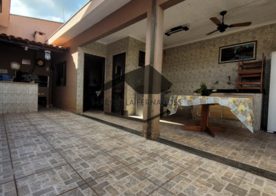 Cozinha com planejados, corredor lateral com pia externa, lavanderia coberta, área de churrasco com pia, 1 quartos nos fundos, banheiro externo.